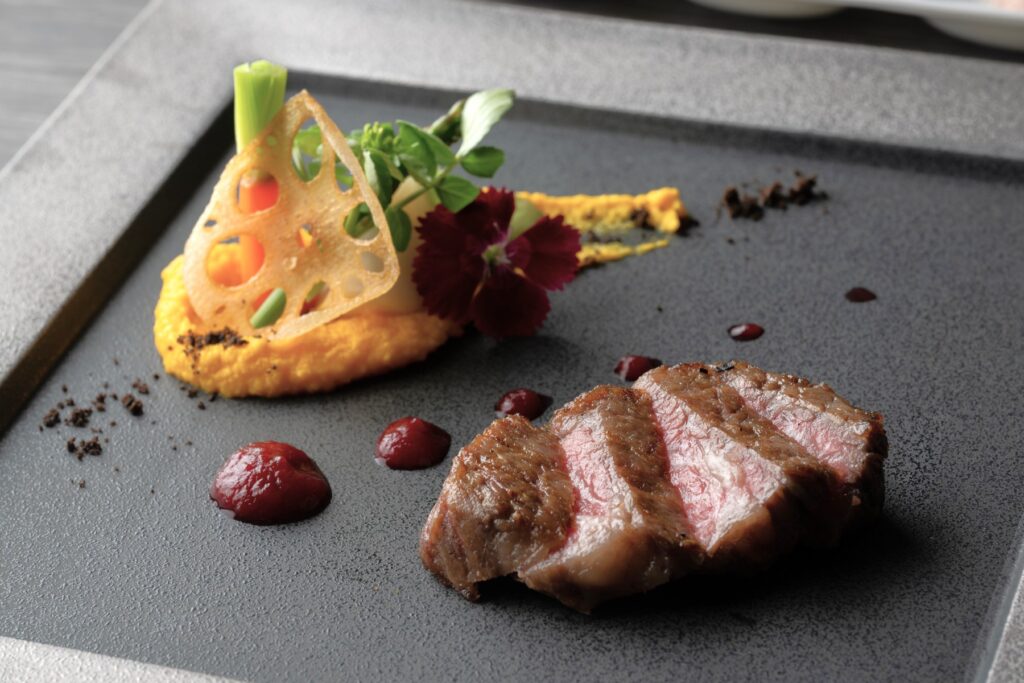 国産牛ロース肉のグリル バルサミコとハチミツのソース